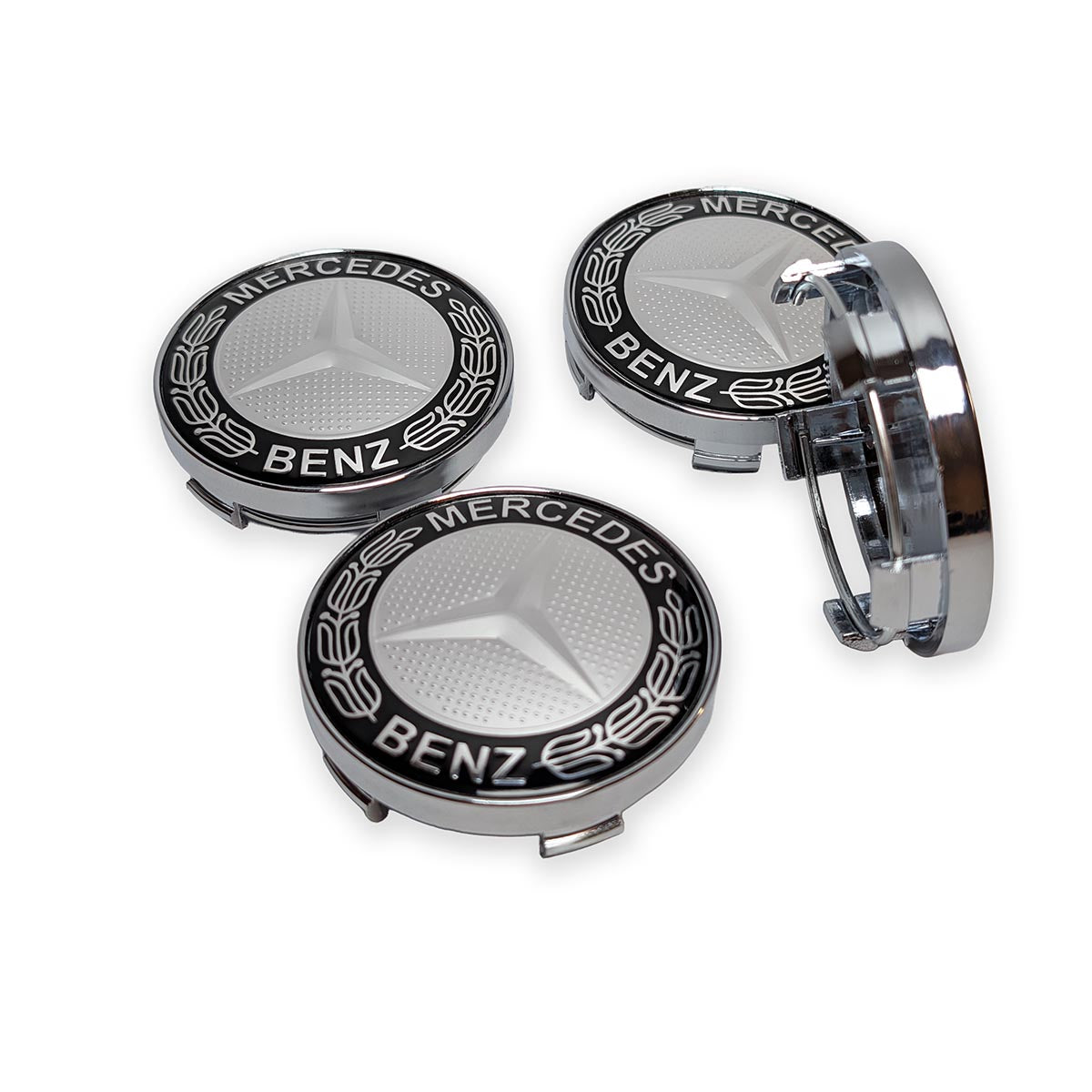 Werten Sie die Optik Ihres Mercedes-Benz mit diesem exklusiven 4er-Set Nabendeckel auf. Das Design in Schwarz-Hochglanz mit verchromtem Stern und traditionellem Lorbeerkranz ist eine Hommage an die Geschichte der Marke und verleiht Ihren Alufelgen sofort eine neuwertige und gepflegte Ausstrahlung.