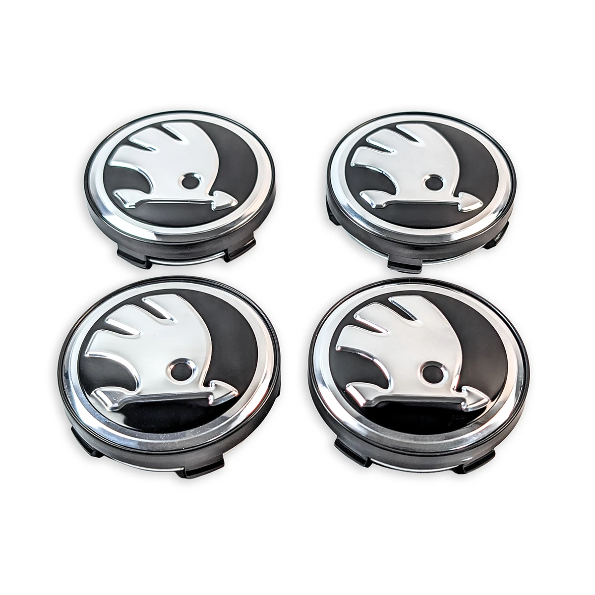 4 Stück 60mm / 58mm SKODA Nabendeckel Felgendeckel Nabenkappen Radkappen